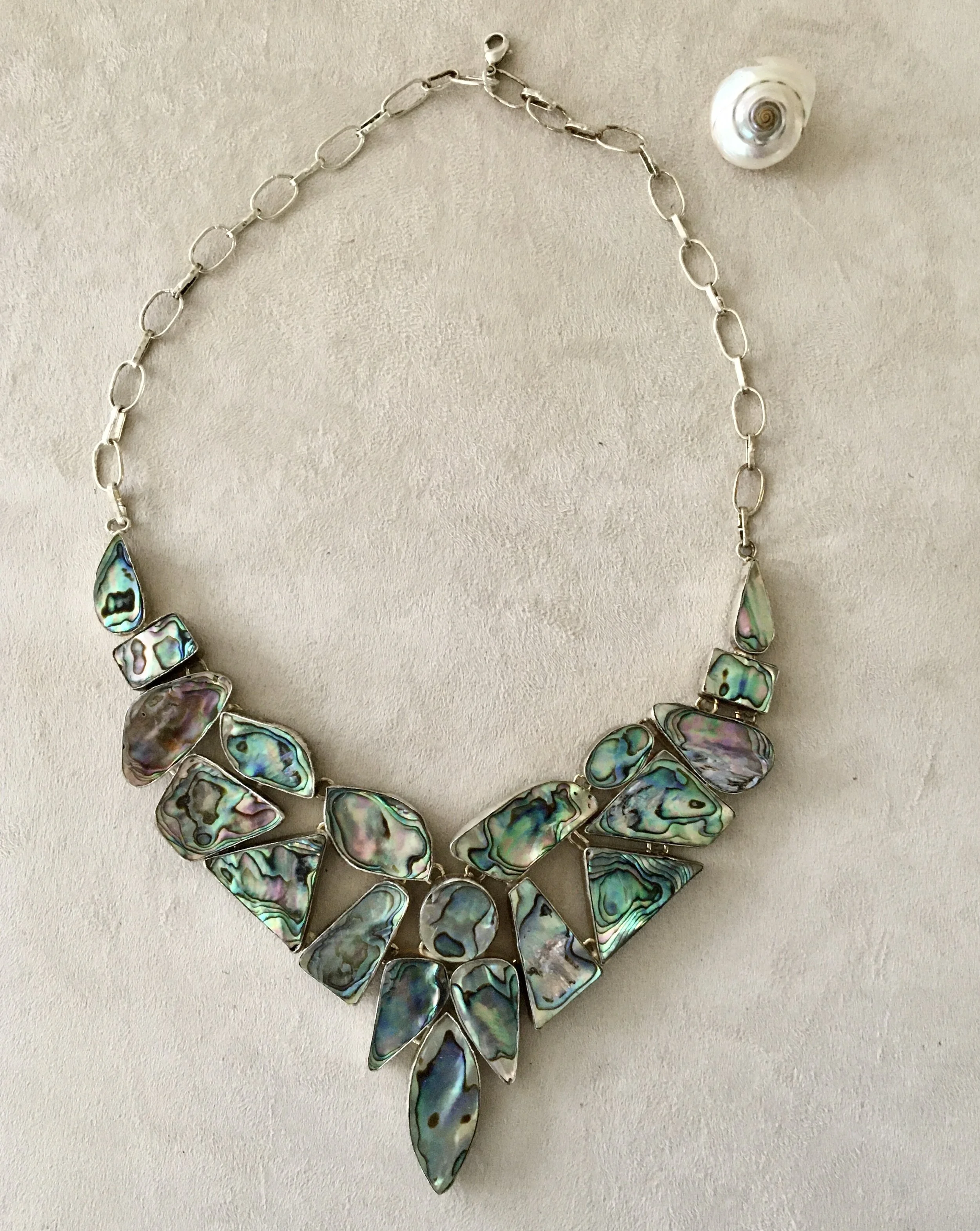 abalone bezel set in silver…simply stunning. dress up or down, always a perfect choice. adjustable silver chain, from 16” - 20”